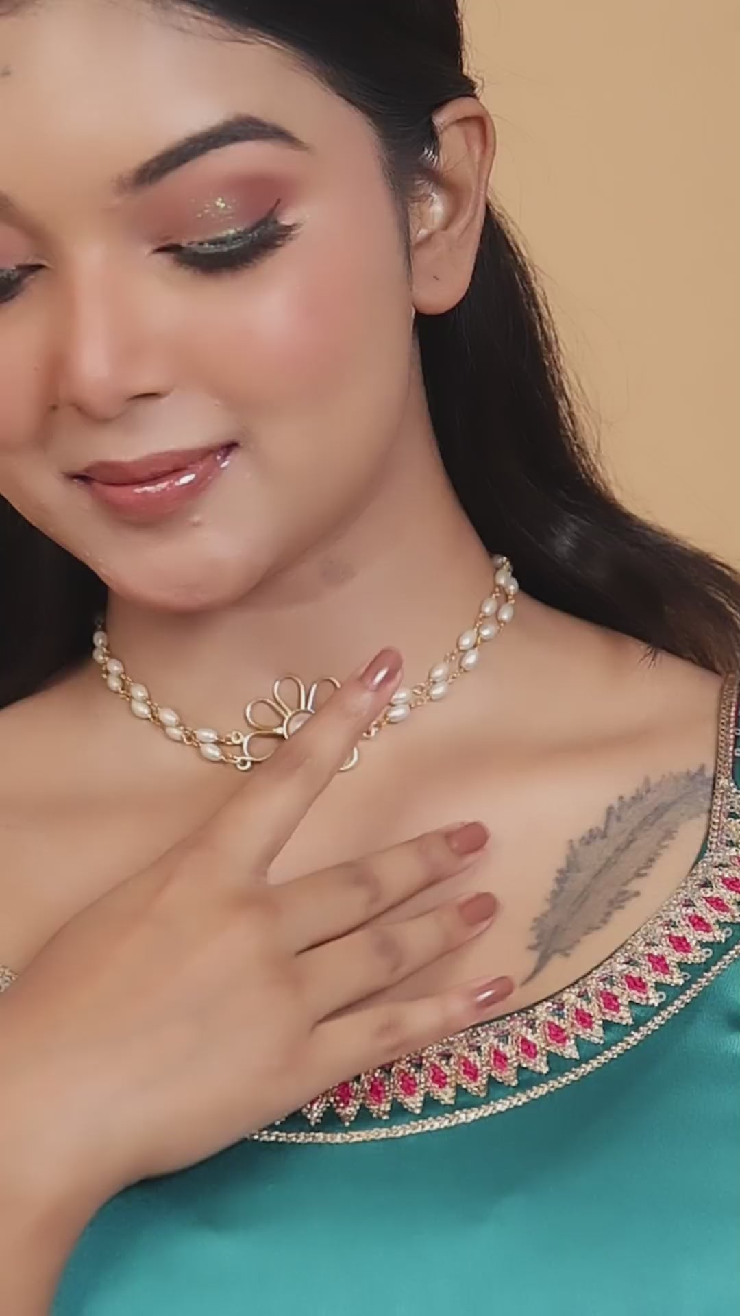 “Handcrafted with precision and passion, our jewellery reflects the dedication and skill of our artisans. Each piece is meticulously crafted by skilled artisans, ensuring that no two are exactly alike. Own a unique work of art."Natural Stone: Crafting necklace set with pearls requires precision and care, ensuring each pearl is securely placed to maintain the integrity of the design. They symbolize purity and wisdom, making this set not just an accessory, but a statement of grace and refinement.Base Material: The necklace is crafted from brass, a durable alloy known for its versatility and ability to mimic the look of gold. Brass provides a sturdy foundation for the choker, ensuring longevity and structural integrity.Finish: The brass is enhanced with a gold-plated polish, giving the necklace a lustrous, golden sheen.Practical Considerations and Care: To maintain the necklace’s beauty and longevity, proper care is essential. It should be stored in a cool, dry place away from direct sunlight to prevent discoloration or damage to the gold plating. After wearing, gently wipe the necklace with a soft, dry cloth to remove oils, lotions, or sweat, which can dull the finish over time.
